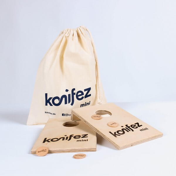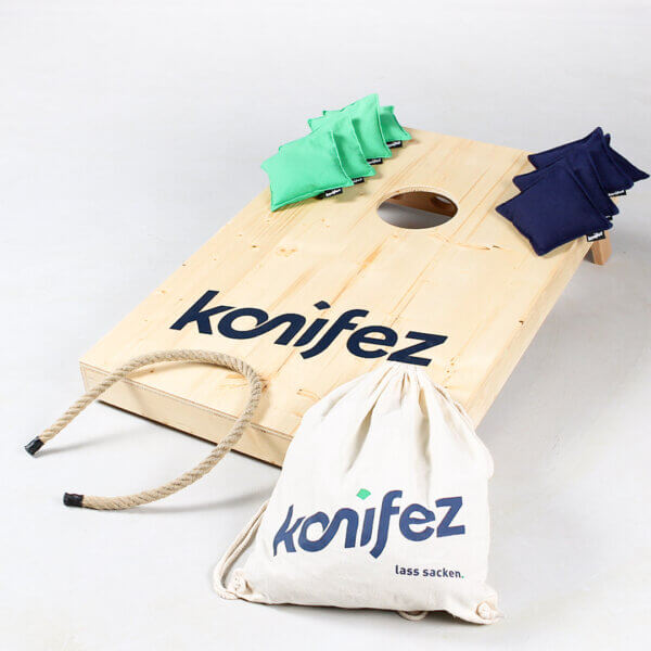 Ganz wichtig: konifez® soll einfach Spaß machen. Deshalb könnt ihr die Regeln nach eurem Können, eurer Spielsituation oder einfach nach Lust und Laune anpassen. Das unterscheidet die konifez®-Regeln von den offiziellen Regeln des Cornhole-Verbandes.